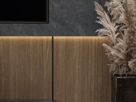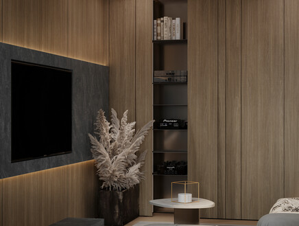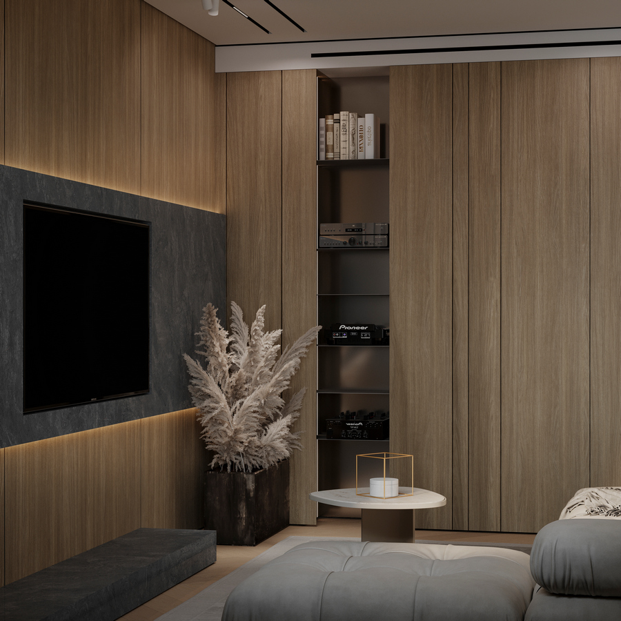 ▸ Акценты: матовая латунь, льняной текстиль, темный мореный дуб